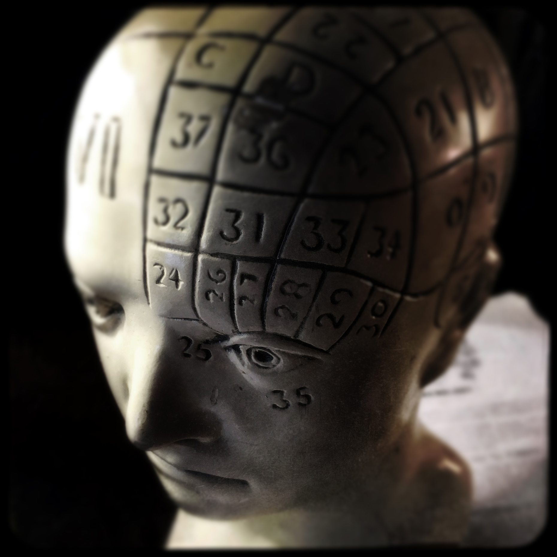“It’s a phrenology bust,” I reply, tracing my fingers along its lines and numbers. Although it is drafty in the attic, the bust is strangely warm, as though it is being heated from within. When I pull my hand away, my fingers are tingling and covered in dust.